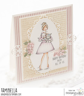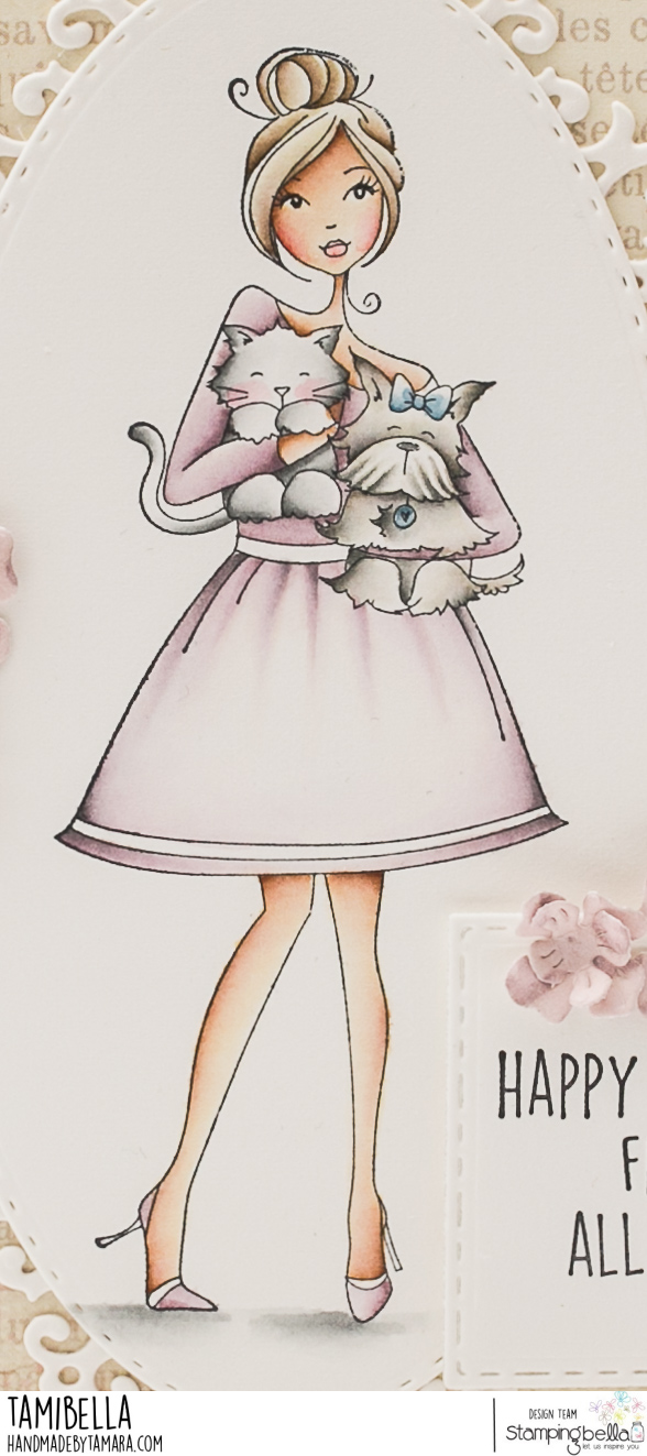 Tamara here with you. Today I have a vintage themed card for you. I used one of the older images from my Stamping Bella stamp collection. This beautiful image is called I love my pets-abella. Yup, that’s me too, love my cats!!