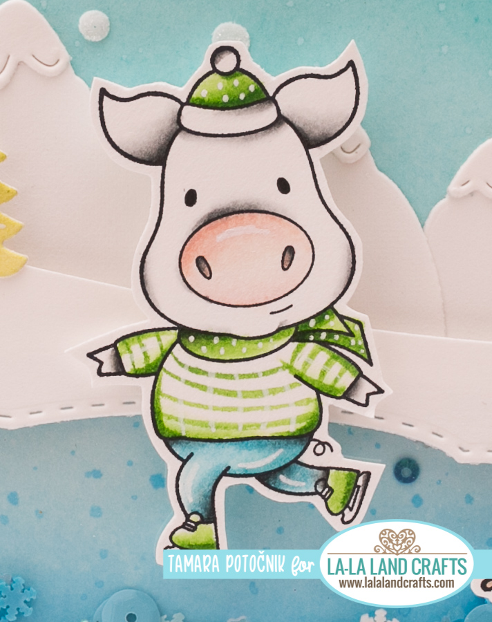 Today I’m sharing with you two cards made with la-la land crafts October 2019 club kit. I loveeeee this kit, I wanted that snowy mountains die for years and finally … here it is. lol