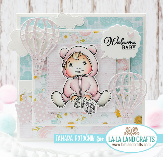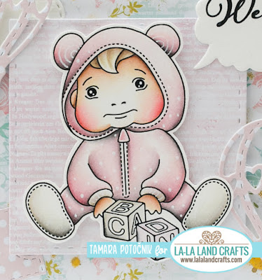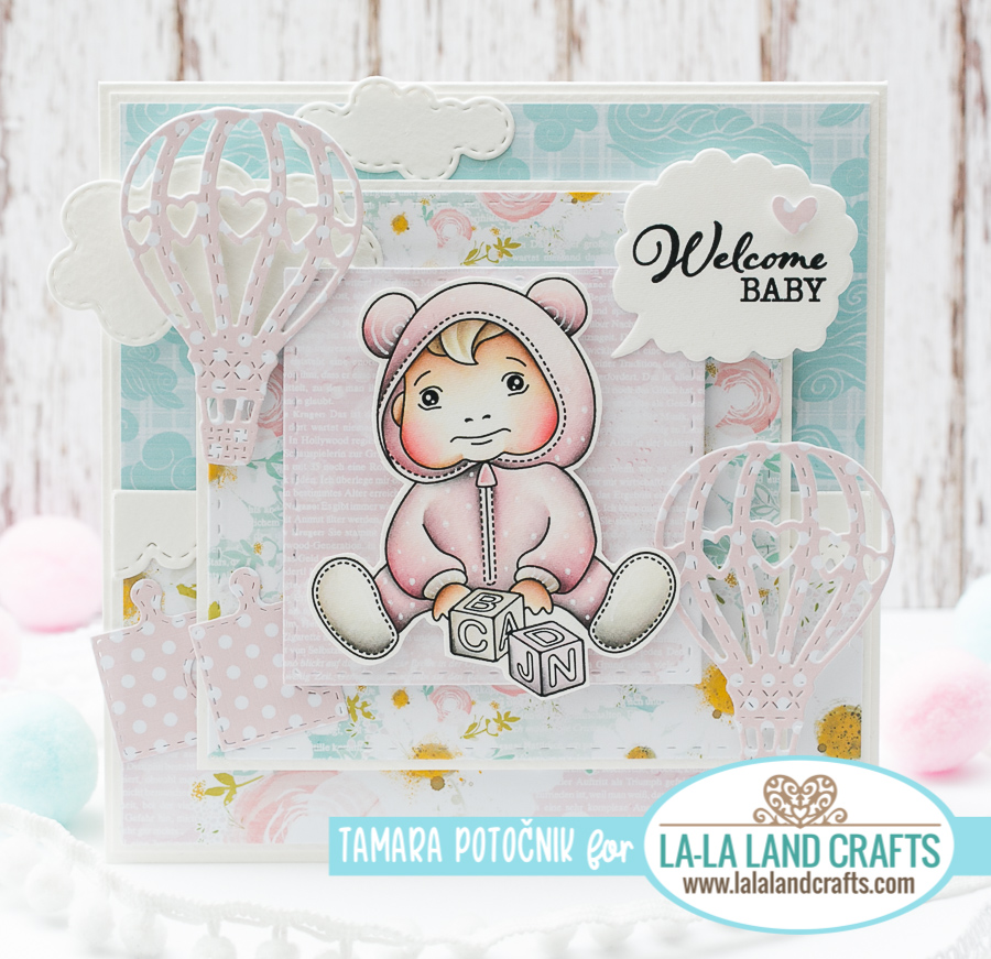 Today I’m sharing my second card made for la-la land crafts New Release Preview day 2. I coloured in one of the new babies from NEW! Bundle of Joy clear stamp set.