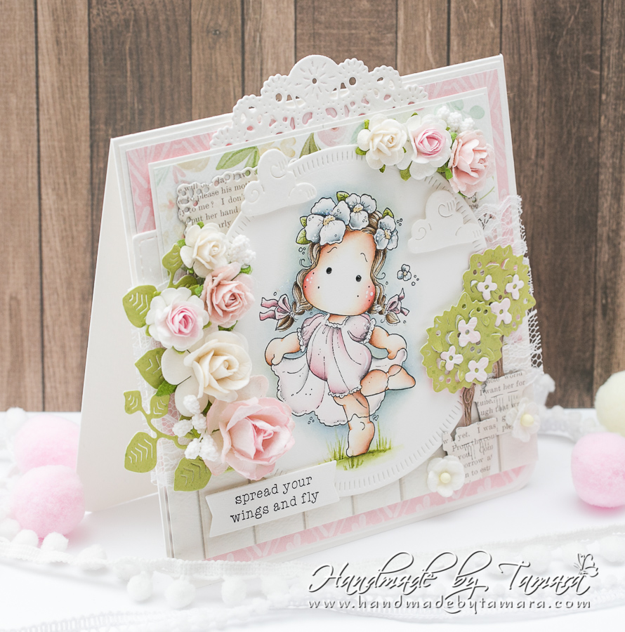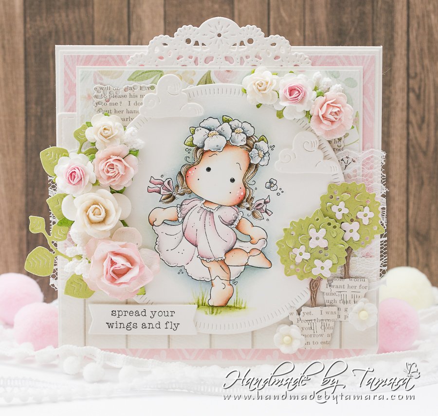 Today I’m sharing with you a card I made with the new image from Magnolia called Flower Petal Tilda. Image is from the latest Fluttering Butterfly Collection, 2020.