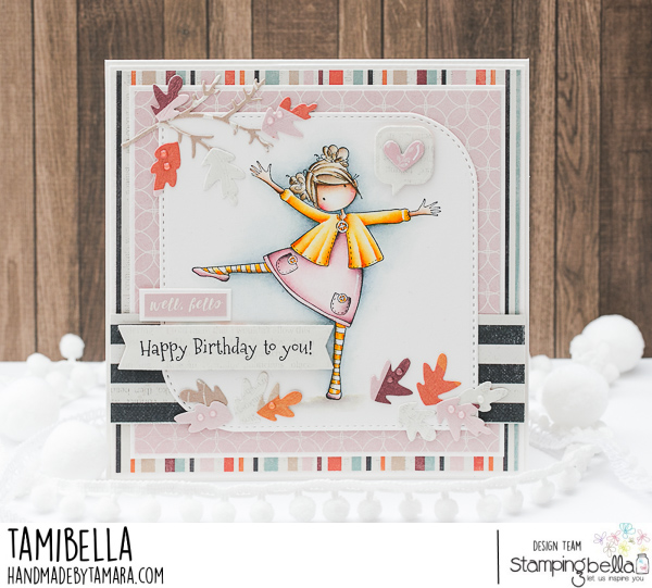 Tamara here with you. School year is over and holidays finally started for me. It was a crazy school year, full of challanges and craziness. My big plan for these summer holidays is to relax,sleep, swimm, craft as much as possible, organize some things arround the house and drink lots and lots of coffee. For today’s card I coloured one of the Tiny Townie images called Layla Loves Leaves.