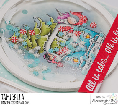 It’s Tamara here with you with my Sunday’s post. I’ve finally (really) started with this year’s Christmas cards. Stamping Bella has soooo many awesome Christmas stamps that it’s not that easy to choose which one to use first. I’ve had this shaker snow globe idea in my head for some time now. I wanted to make it super easy, no extra dies used or anything. Only die used was nested circles for the glass part, other than that it’s all hand cut.