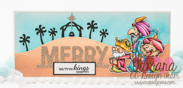 Tamara here with you today. For this post I coloured one of the new images from October’s release called Tiny Wisemen. Image was stamped using Archival Ink – Jet black on 300g HP watercolour paper and then coloured up using Distress Ink pads.