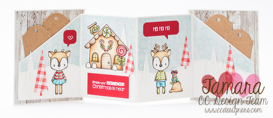 Today I have a new Christmas card for you. I used super adorable Christmas animals from C. C. Designs. These are brand new from November’s release. Some of you might remember I made a card like this a year or two back with similar set of animals. These are so easy to make and I really like them.