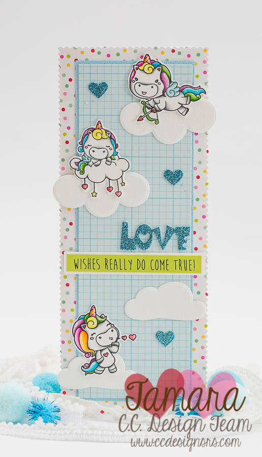 Today I’m sharing with you my Unicorn card made with C. C. Designs JANUARY release. It took more than a month for these cuties to finally arrive to me. As you all probably noticed, Christine made a few slimline die sets. I used: