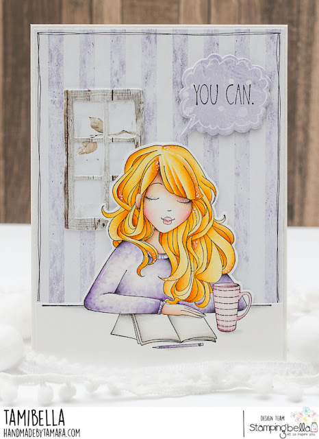 Tamara here with you. Today I have a CAS card for you. I really like colouring up these Mochi girls, they are big enough so I don’t have to strugle with the tinyest details and still they are perfect size for a card. She’s called Journaling Mochi Girl.
