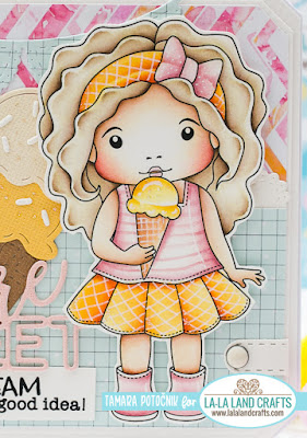For Day 5 I made a cute girly notebook featuring Marci with Ice Cream. I added lots of pretty new design papers and die cuts.