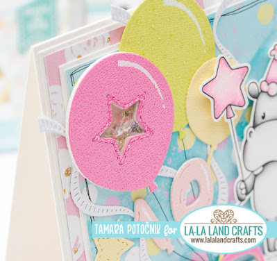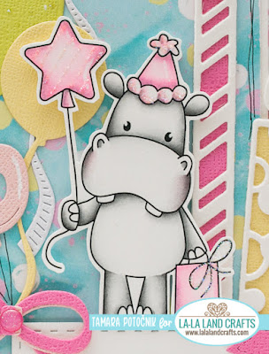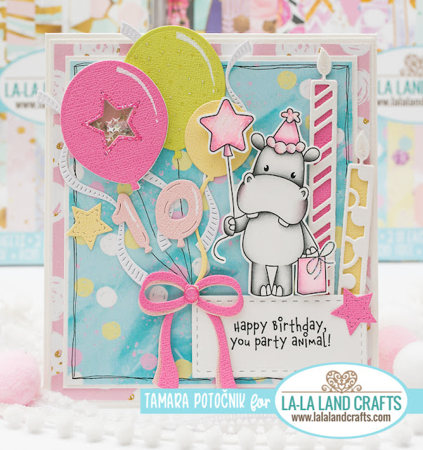 This week’s theme at la-la land crafts is “Use New Release”. I made a Birthday shaker card with this cute little hippo.
