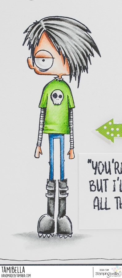 Tamara here with you. For this week’s post I made a Birthday card for a boy, teen actually. I’m a HUGE fan of these Oddball images. They are the easiest thing to colour and their expressions!? Awesome!! Another thing that I really love about them are the sentiments, which are so much fun.