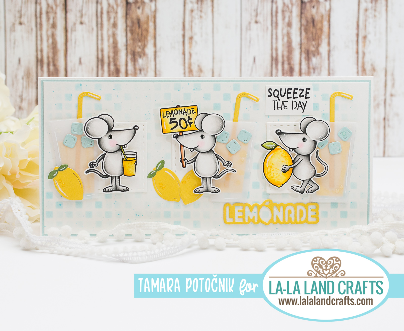 Welcome to La-la land crafts’ inspiration Friday. This week’s theme is Critter Fun. Since it’s crazy hot outside I decided to use my cute mice set and make a Summery card with it.