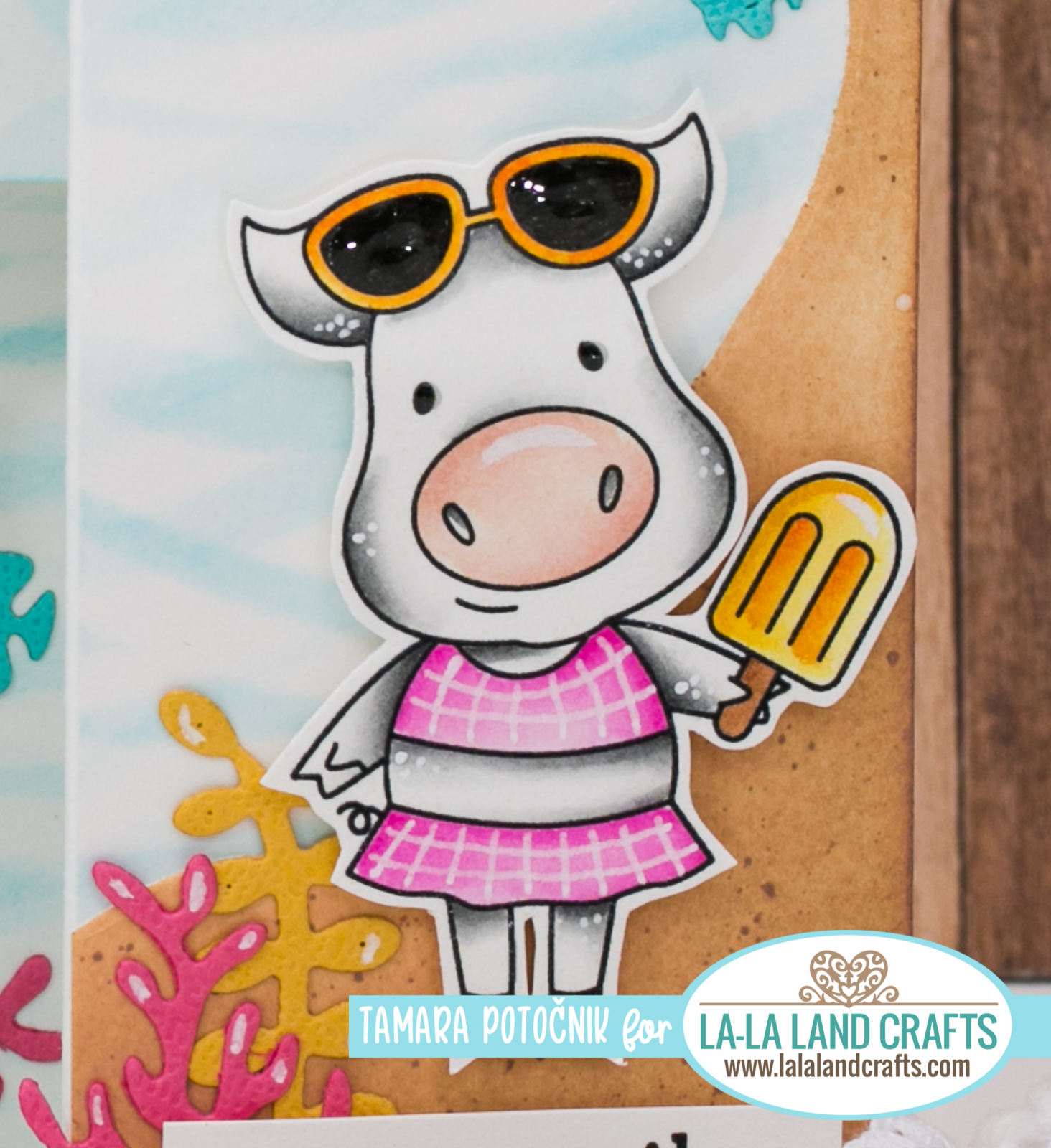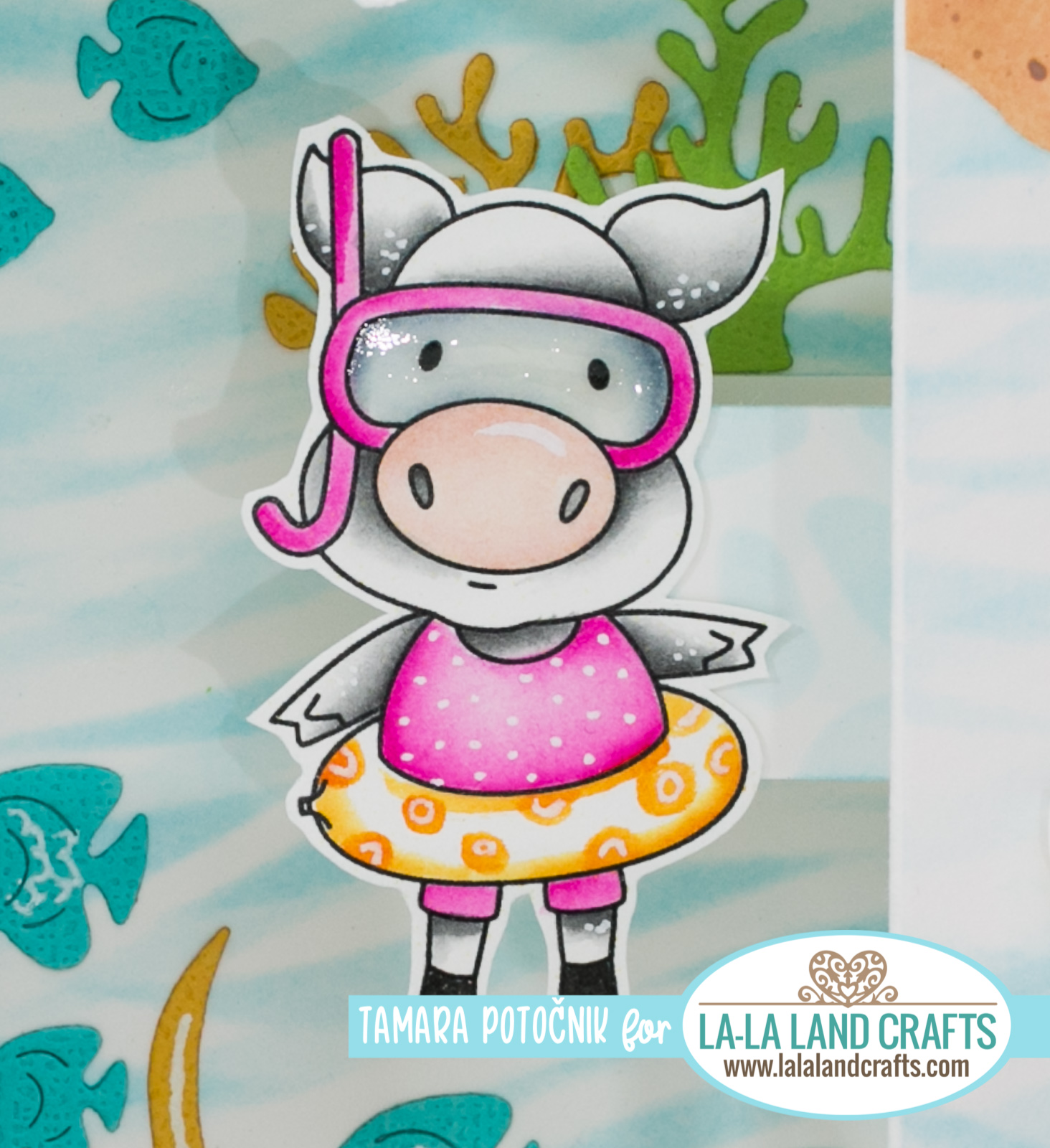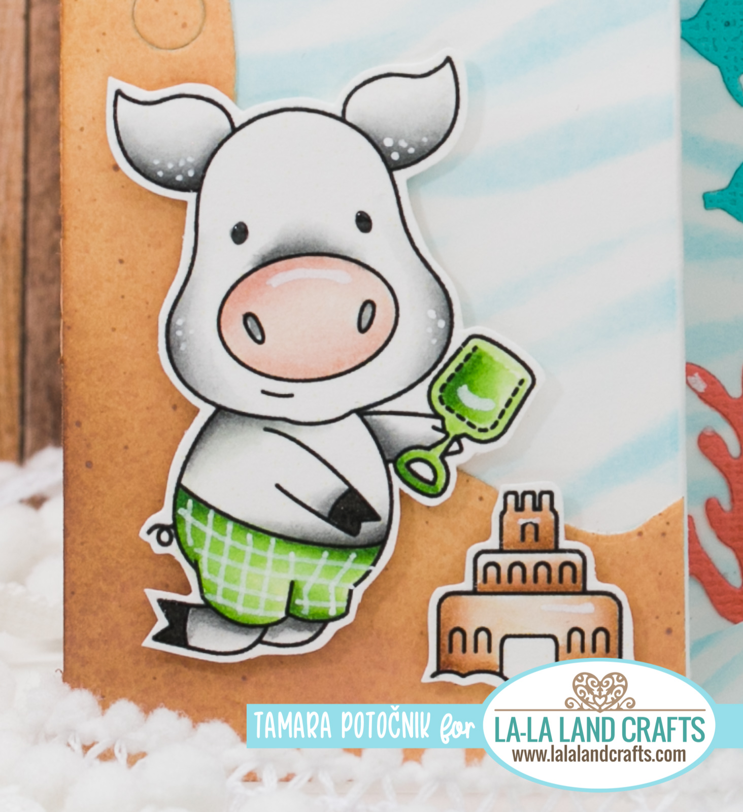This week’s theme at la-la land crafts is INTERACTIVE. I made an expanding box card with a pop up element. I used cute piggies and some new die from la-la land crafts. To make the base of the card I followed this tutorial.