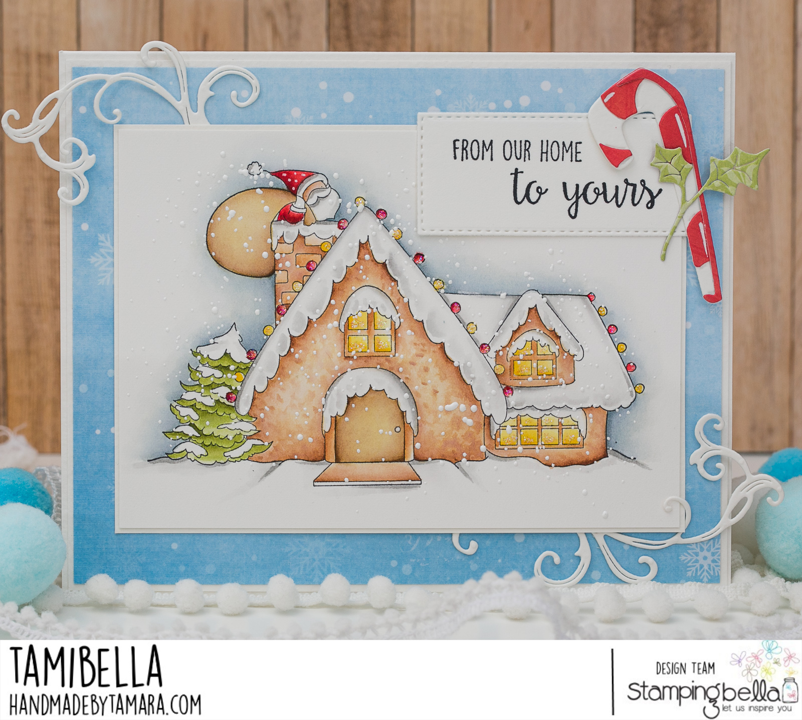 Sentiment used is from an old Stamping bella stamp set, called Gingerbread House. I decorated the house with some die cuts and glitter.