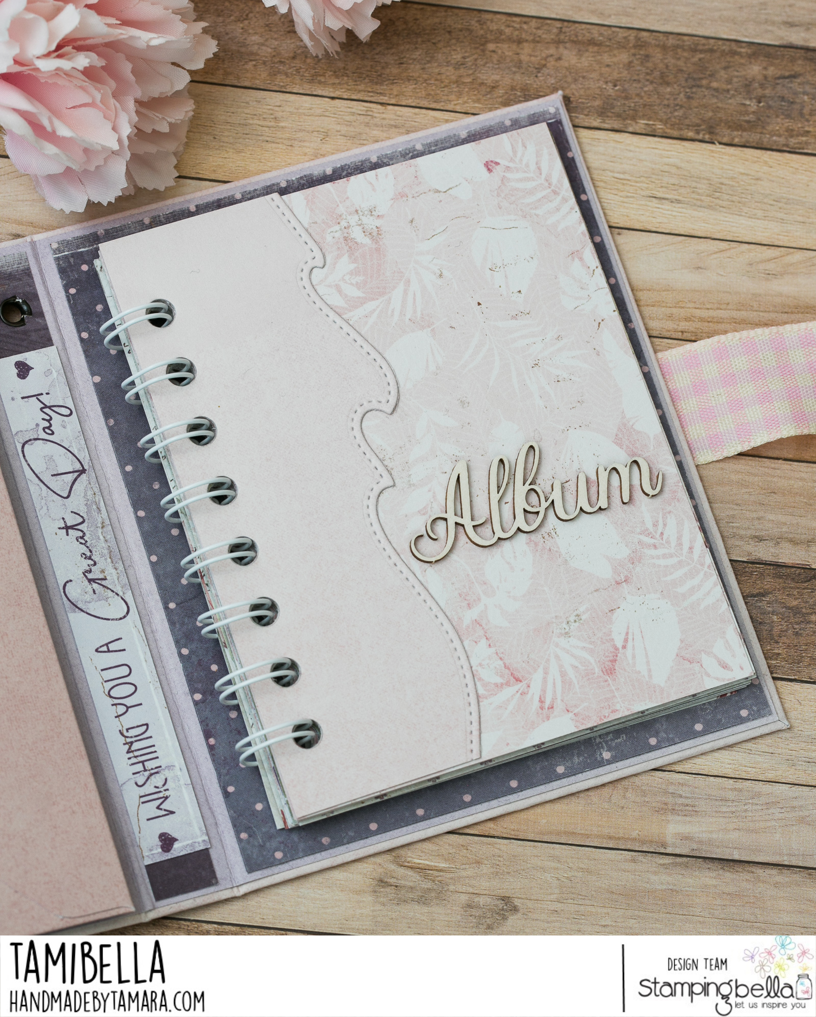 Tamara here with you. For this Sunday’s post I made a mini album. This mini album first started as a small notebook. I made the cover and the notebok part and then I wasn’t too sure if I like it, so I tore it apart and added the album pages. I added an envelope, because there are always some spare pictures that don’t go with the others in the album or they should be kept a bit private. lol
