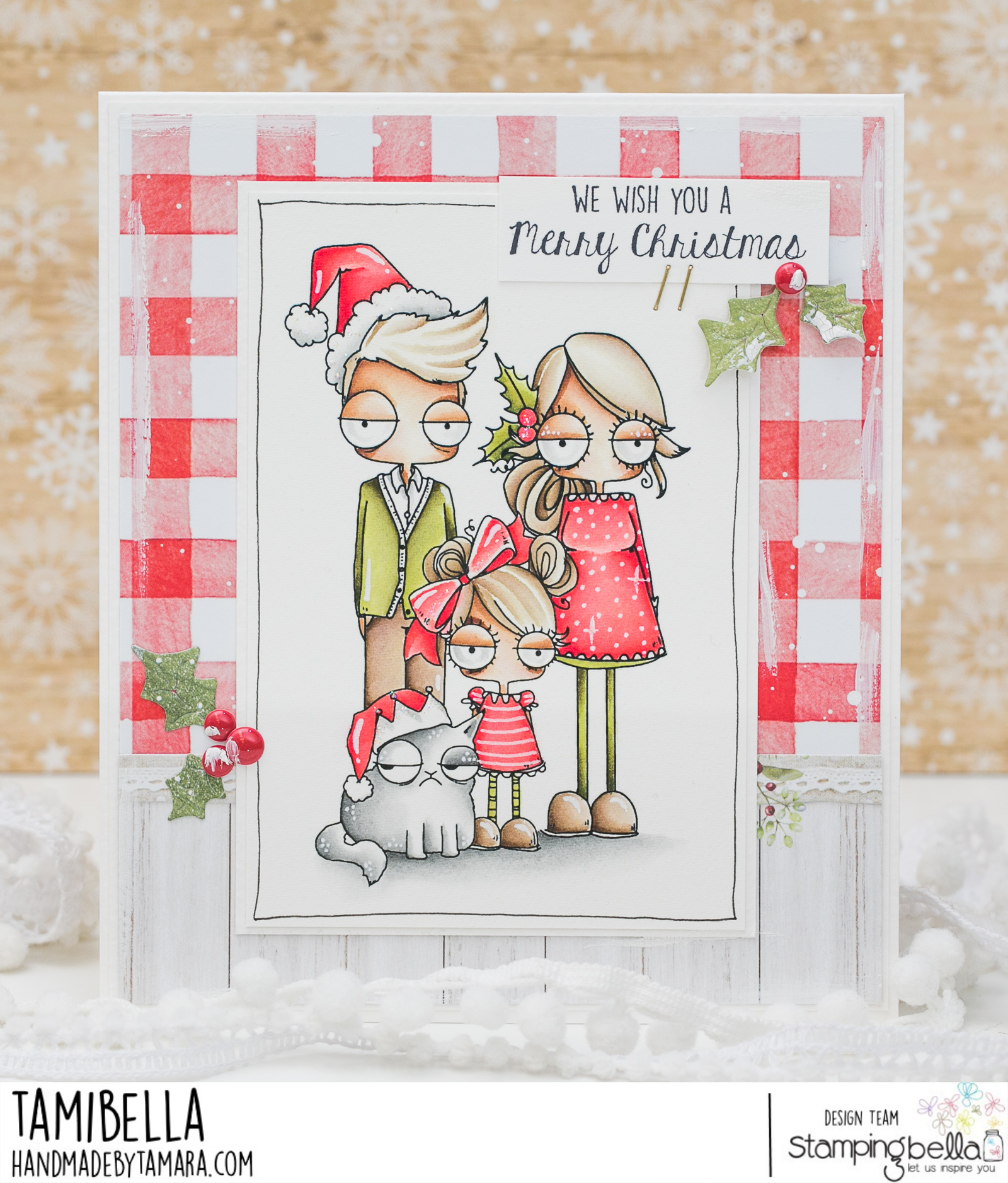 I have two cards for you today, Gnomes and Christmas family. The family card was made with 3 new stamp sets: Oddball Christmas Parents, Oddball Christmas Kids and Oddball Christmas Pets.
