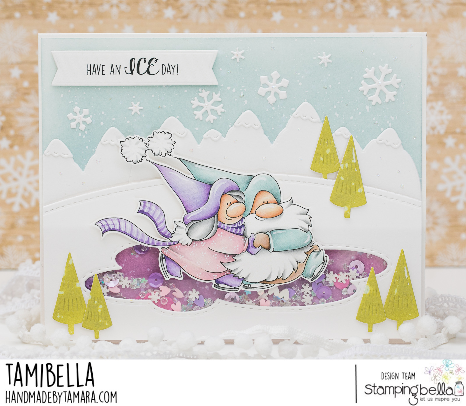 I LOVE the Skating Gnome card you’ve made. I know the stamp came from Stampingbella, but I’d like to know where you got the die for the skating rink. Your idea to make it into a shaker is amazing. Any help would be appreciated because I would love to CASE your card please.