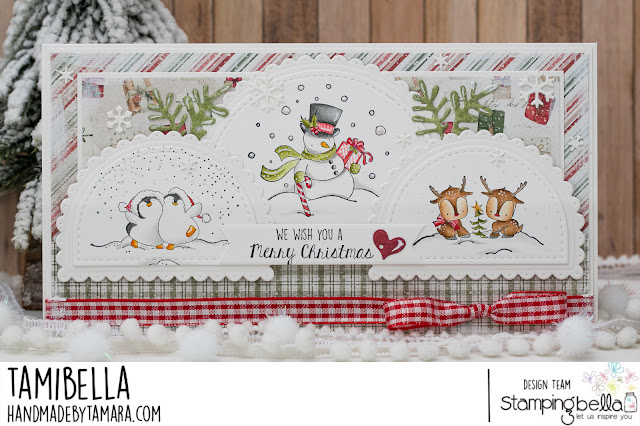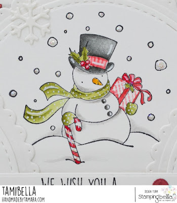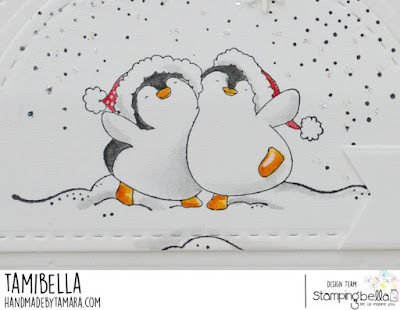 Tamara here with you. For my last Stamping Bella post of 2021 I made a Christmas card to wish you all magical Holidays. For this card I used images from Design a globe rubber stamp set. There are 4 images in the set (snow globe base and 3 images for the inside), I only used the “inside” of the globe images on my card.