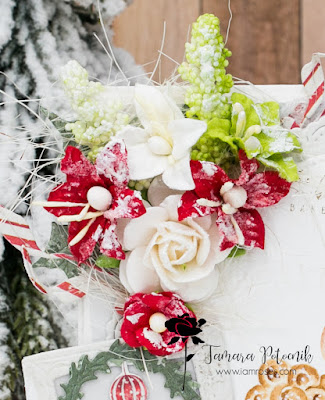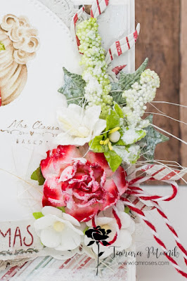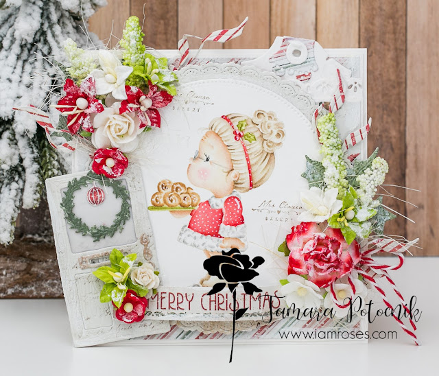 Tamara here with you with my new card. I used Mrs. Claus from Magnolia and made a Christmas card. I went with traditional white-red-green colours this time.
